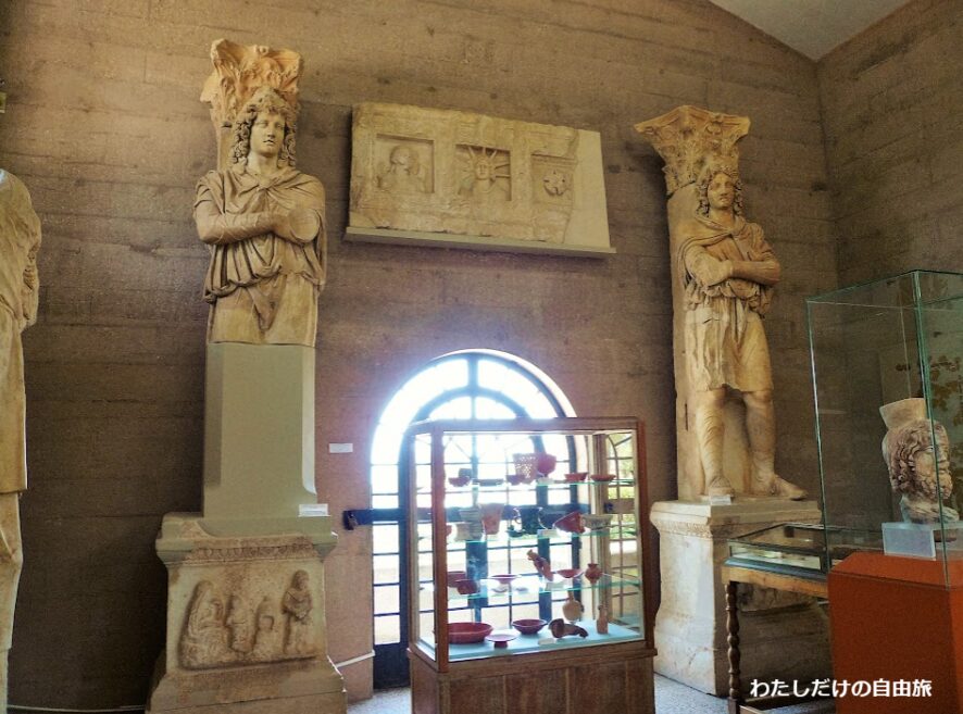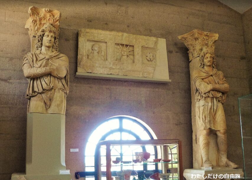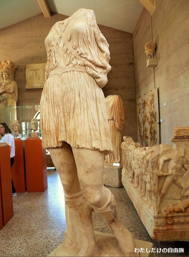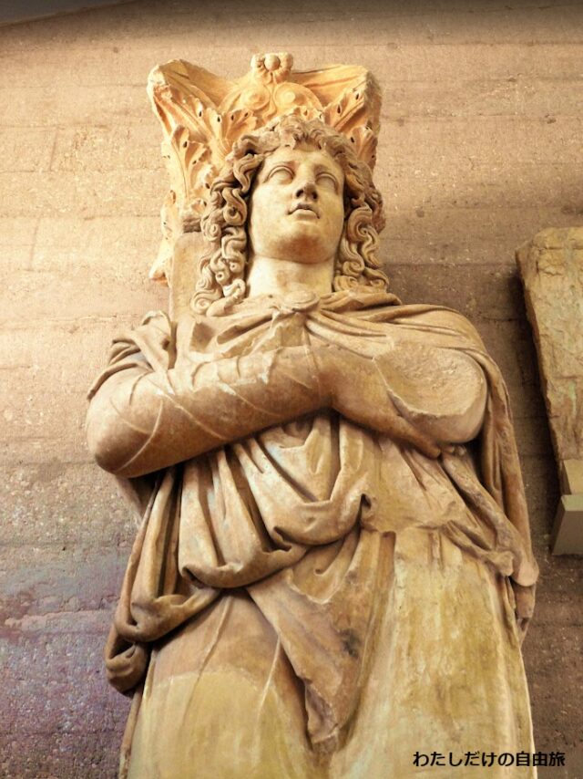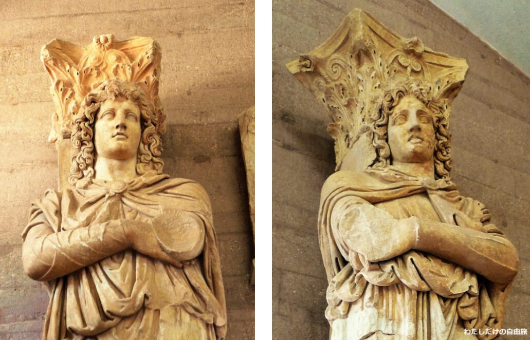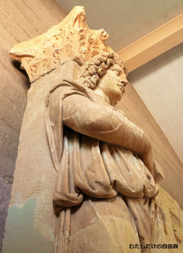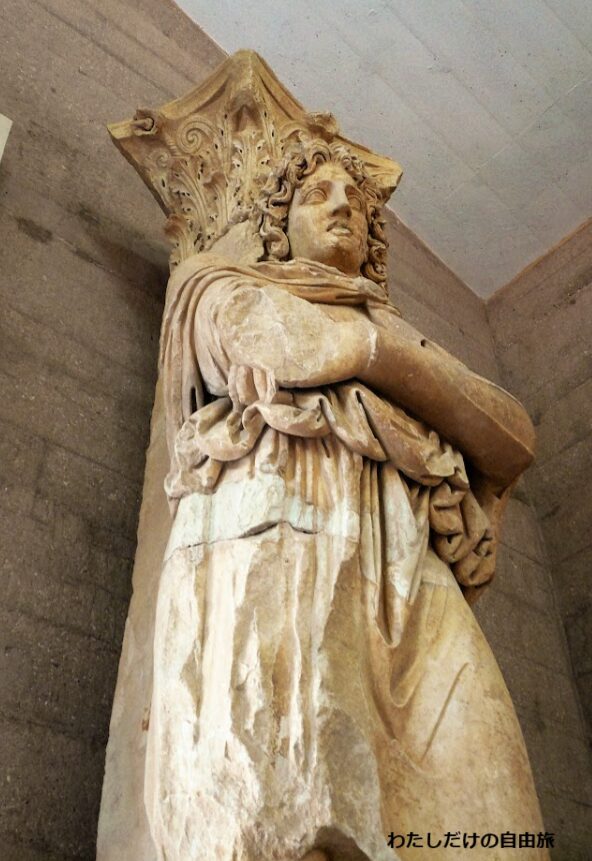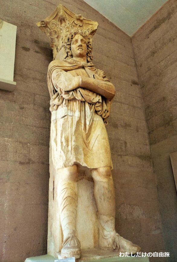 こんなにも容姿端麗で堂々とした二人であったが、これらの像は、北バシリカの「捕虜のファサード」に柱として使われた、フリギア人捕虜の巨大像なのだそうである。2世紀後半のもの。