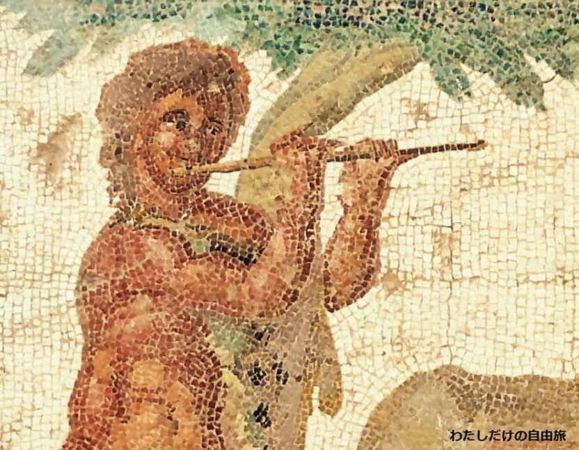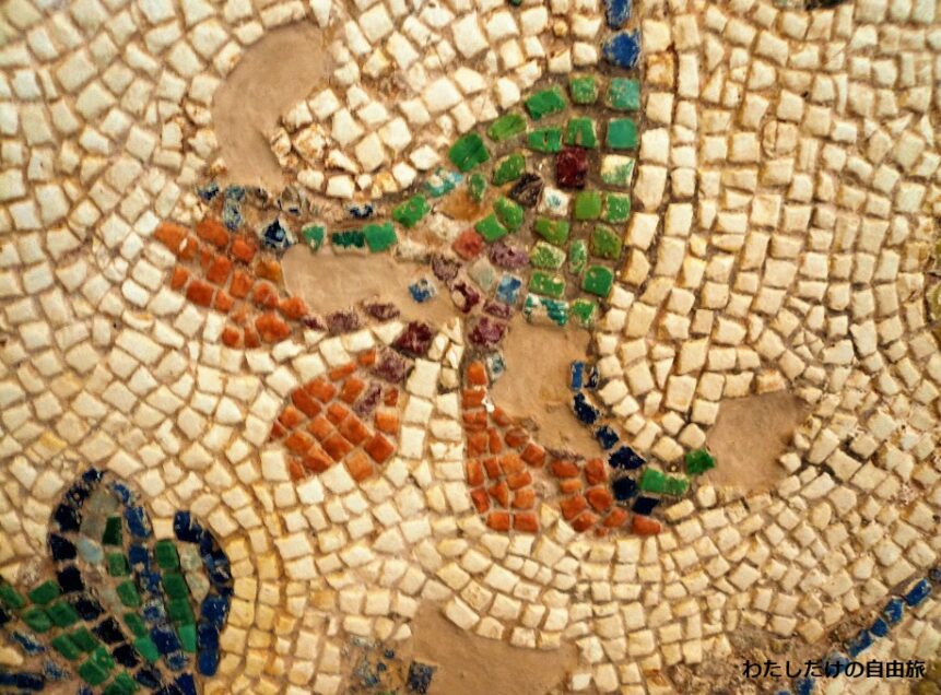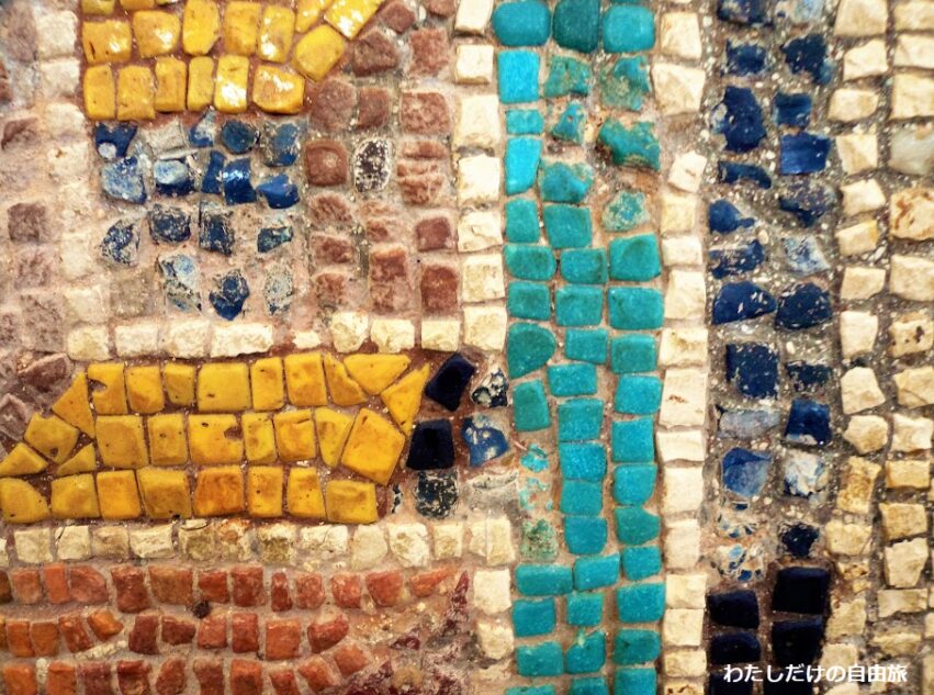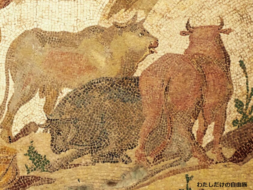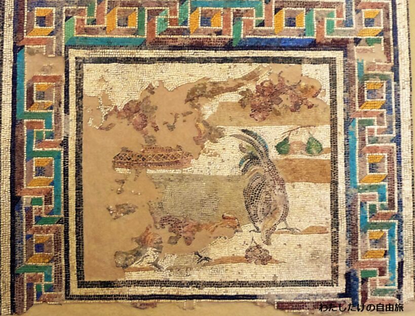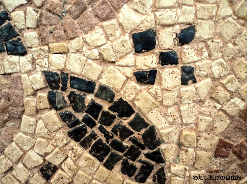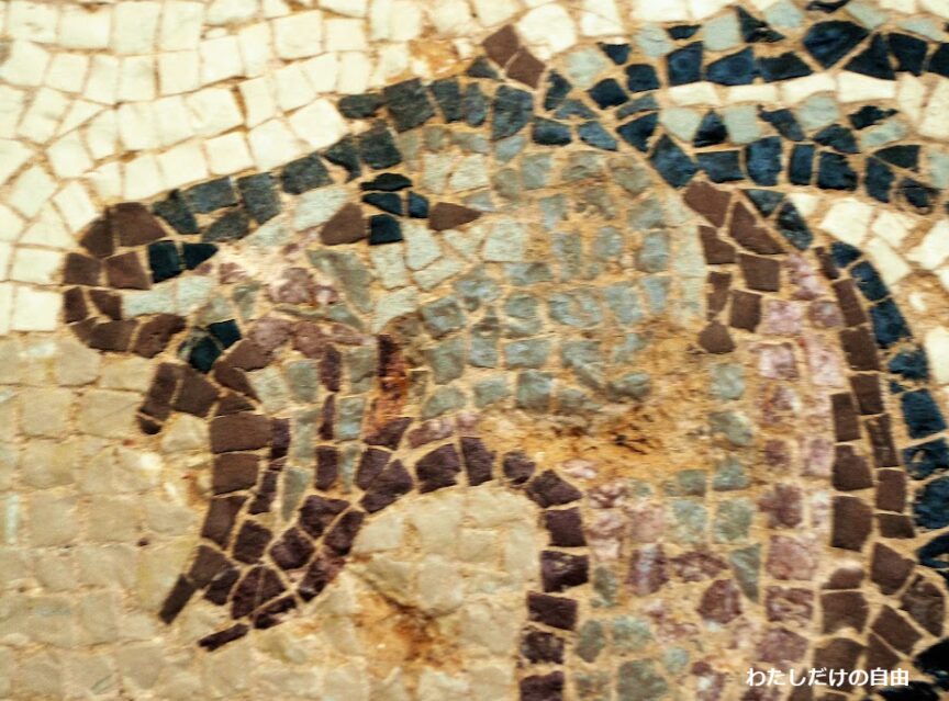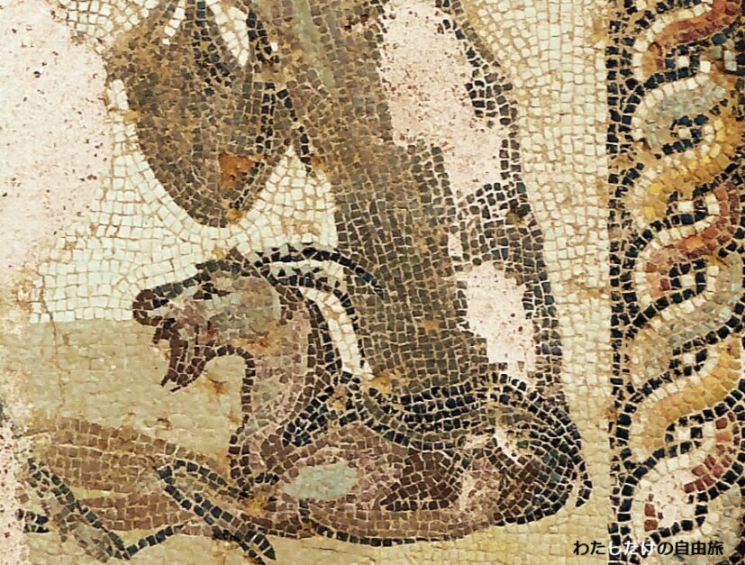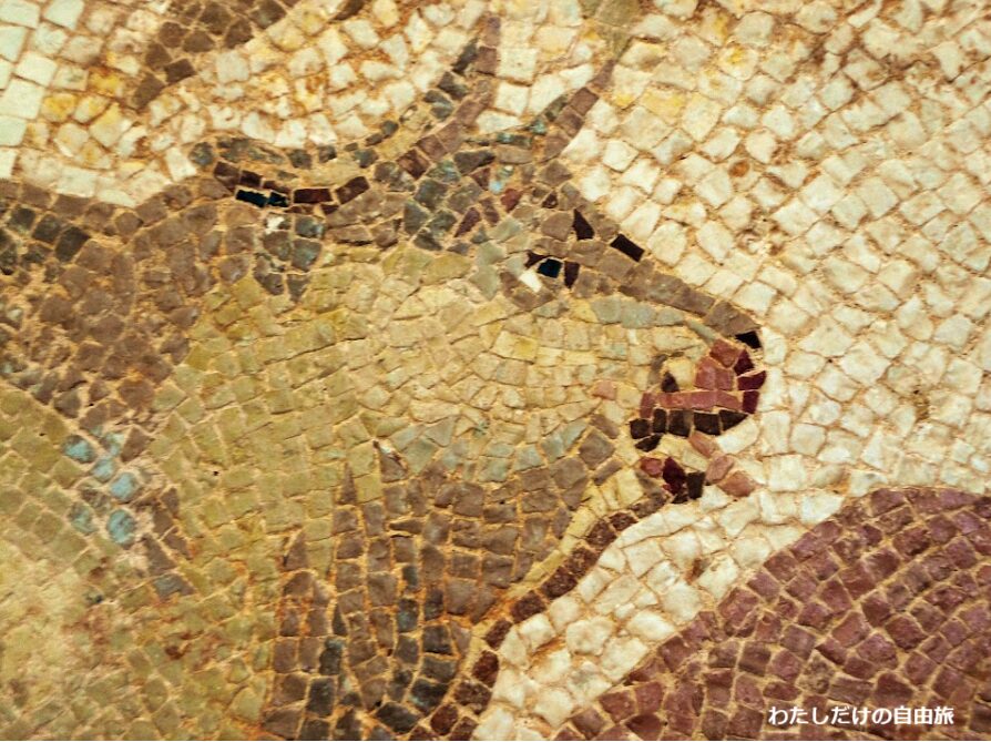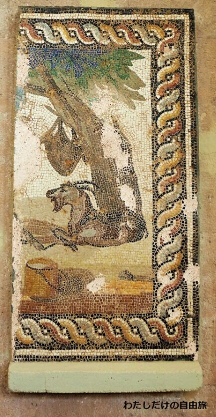 こちらは、ヤギが描かれたモザイク床、西暦175年~225年頃のもの。残念ながら、展示は右半分のみ。