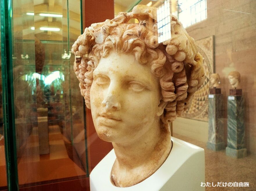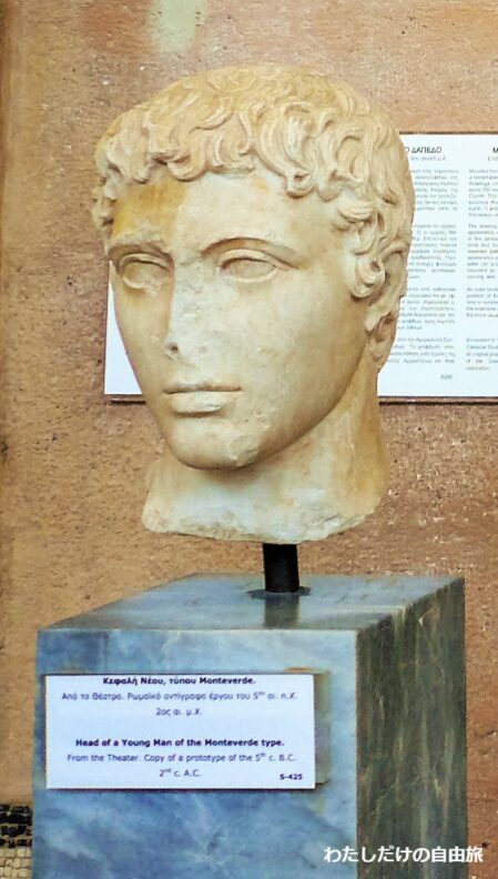若者の頭部像、劇場より出土、紀元前5世紀の彫刻の複製品で2世紀のもの。