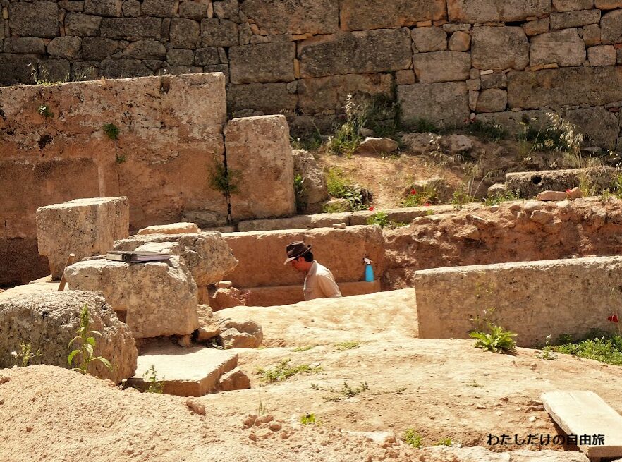 発掘の中心におられたのは(おそらく)この方。インディ・ジョーンズ・ハット(笑)がお似合いでした!