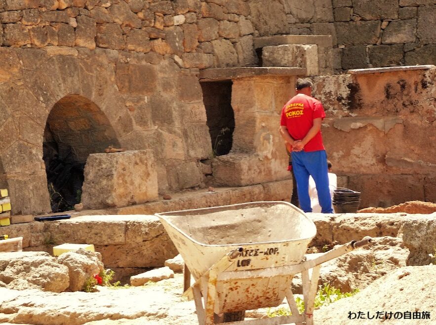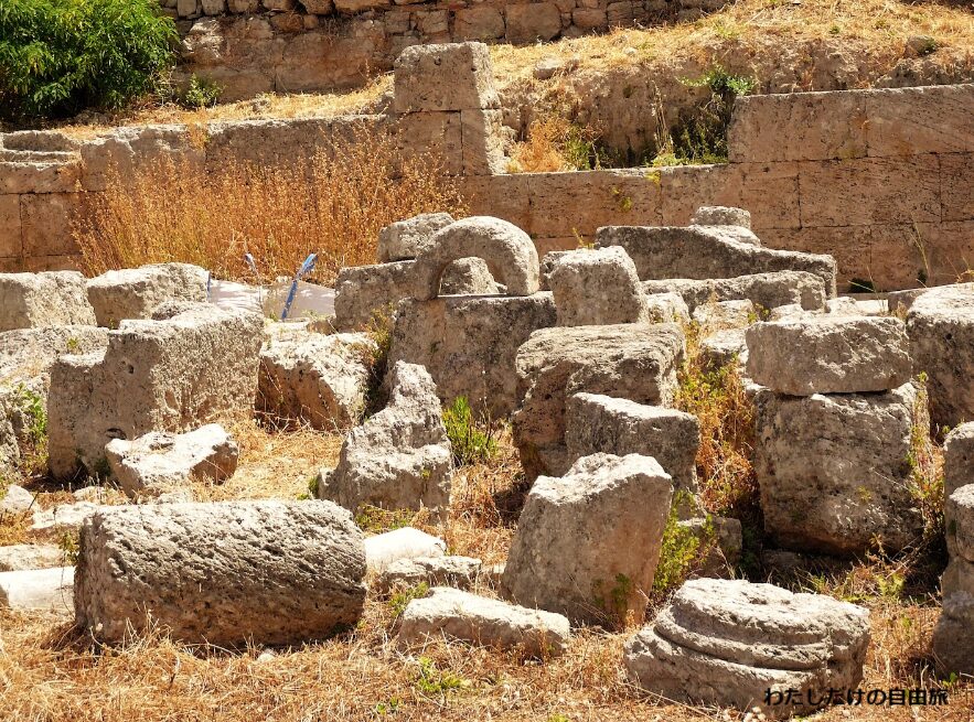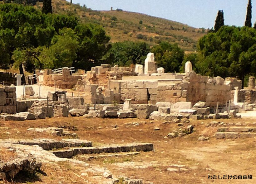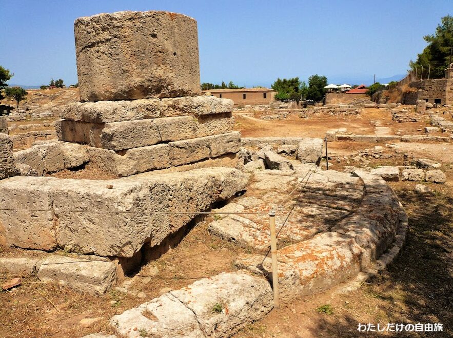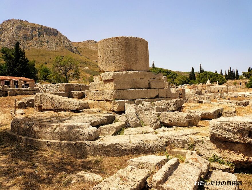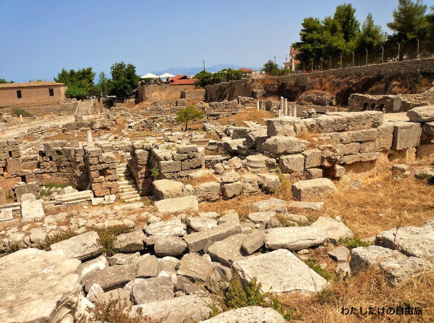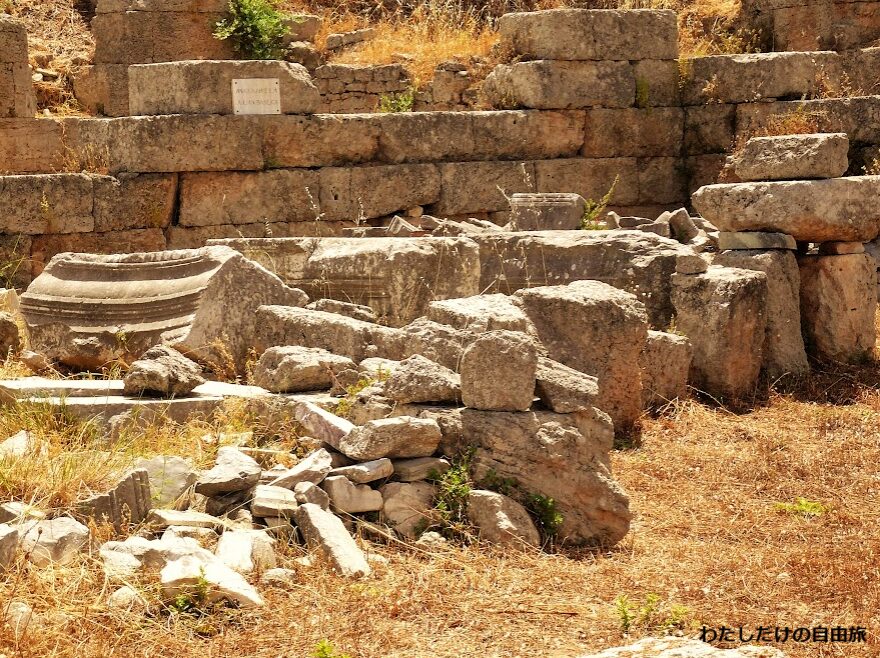 ※(後日、自分なりにネットで調べたところ…、西暦1世紀、ローマの植民地として、コリントスが再建された後、最初に建てられた主要建造物の一つであり、堂内には、ユリウス=クラウディウス朝の多くの彫像と、皇帝アウグストゥスの祭壇が備えられていたそうだ。また、ローマ帝国のアカイア属州の法廷がここに置かれていたとも言われ、この大聖堂は、この地にローマ大都市としての地位を確立し、皇帝崇拝の中心地を築くことに、重要な役割を果たしたそうである)。